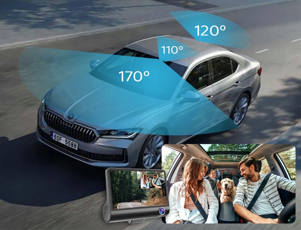 ✔️ кут огляду170° для фронтальної камери, 110° для внутрішньої камери і 120° для Камери заднього виду захопить всю сцену навколо вашого автомобіля. Відеореєстратор не пропустить жодної деталі, будь то Дорожня подія або красиві пейзажі, які ви проходите.