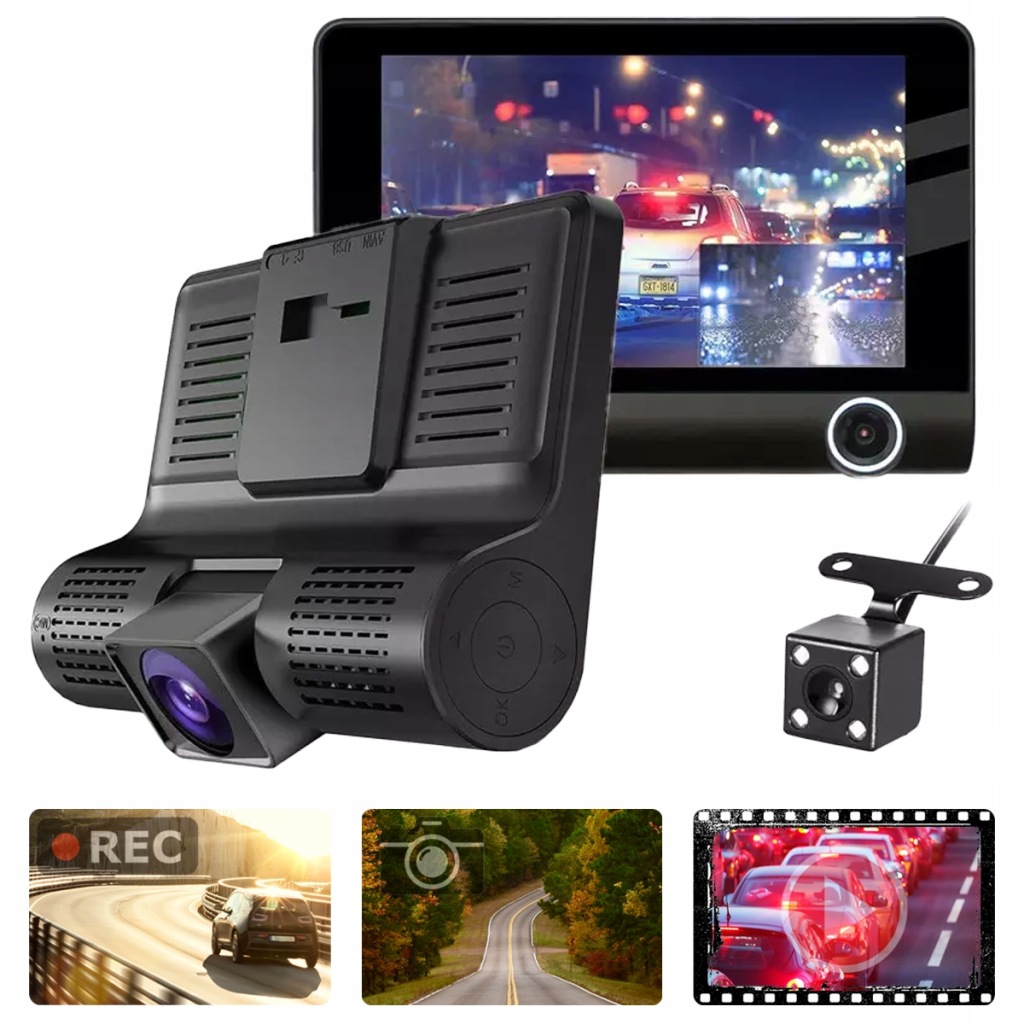 екран 4" ➡ ️ Карта 64 ГБ ➡ ️ 3 камери ➡️ відео FullHD ➡ ️ Асистент паркування➡️високі кути огляду ➡ ️ Підтримка карт 64GB ➡️ реєстратор Uber ➡️ Камера Автомобільна таксі ➡️ відео-реєстратор bolt