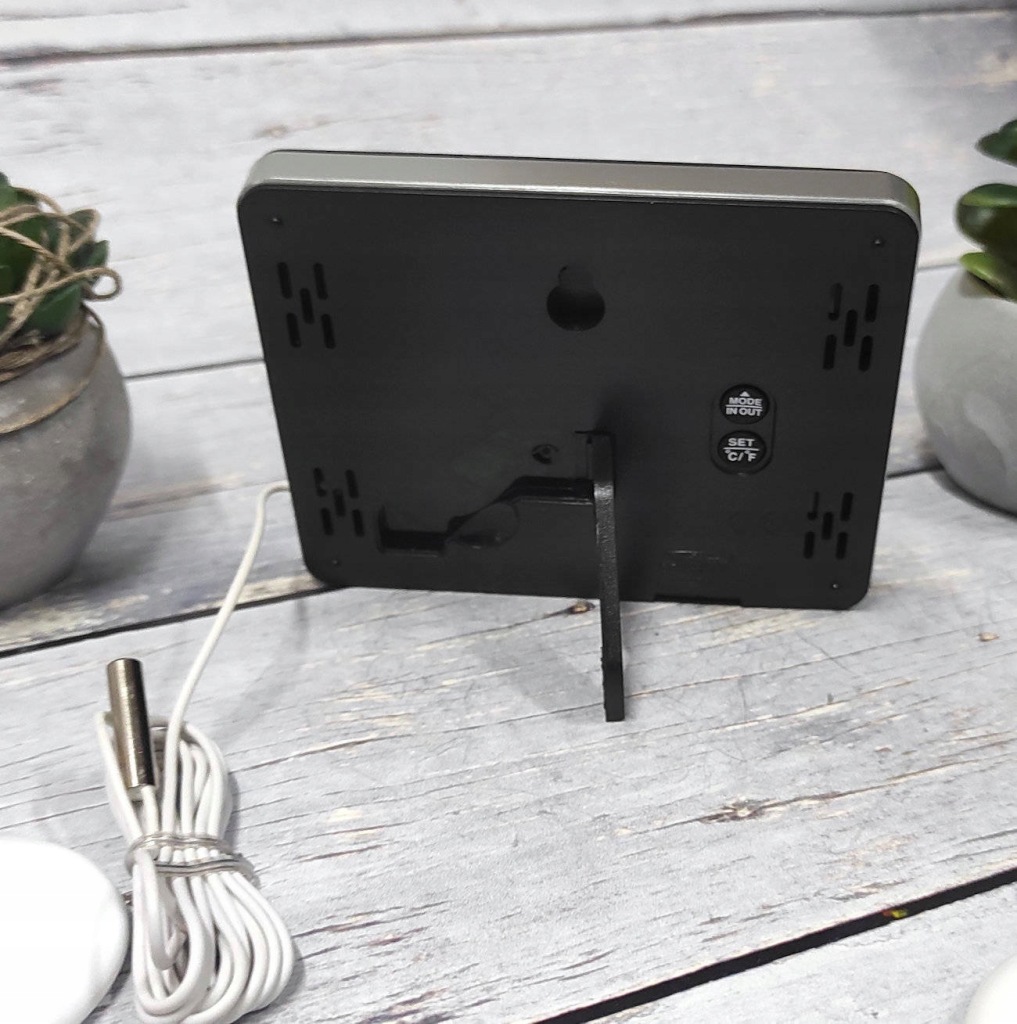цифровий термометр JVD T713. Памʼять мінімальних і максимальних температур. Зовнішній датчик на кабелі. Тенденція зміни температури. Індикатор обмерзання.- годинник - форма: прямокутна