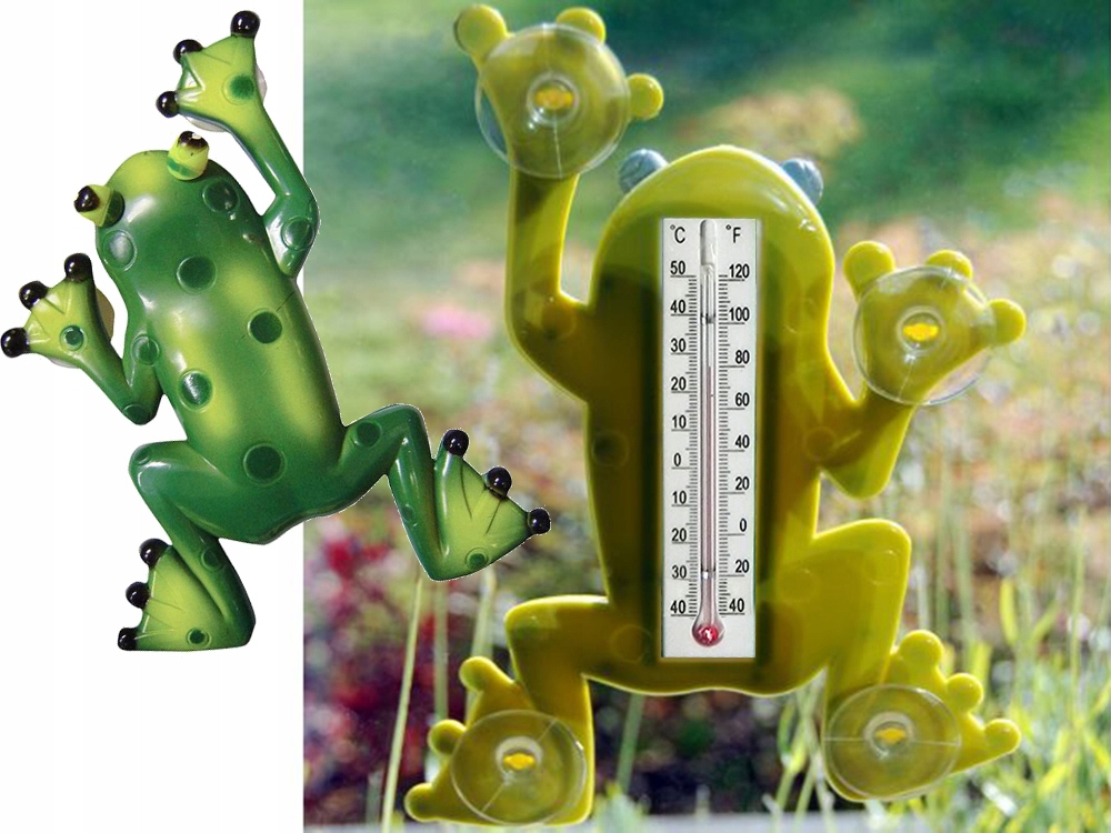 термометр віконний жаба , це дуже ефектний гаджет, який можна наклеїти на будь-яке плоске скло.