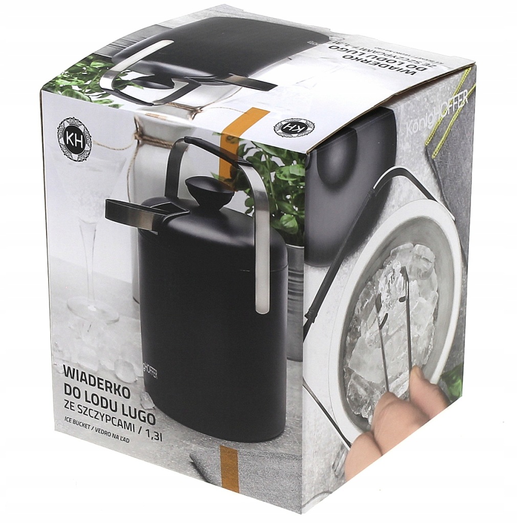 відмінний ящик для льоду чорного кольору виготовлений з високоякісної нержавіючої сталі. До складу входять: контейнер з ручкою, кришка і зручні плоскогубці. Контейнер ідеально підходить для подарунка.