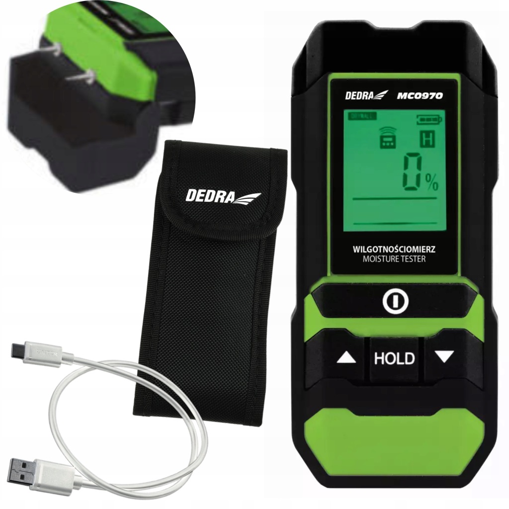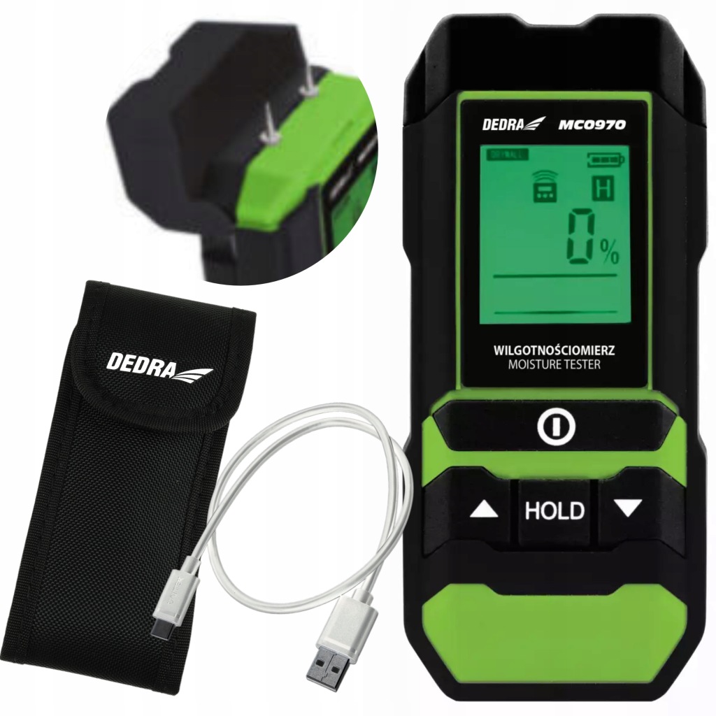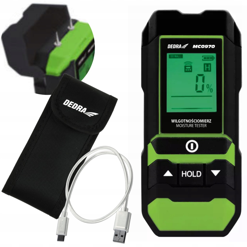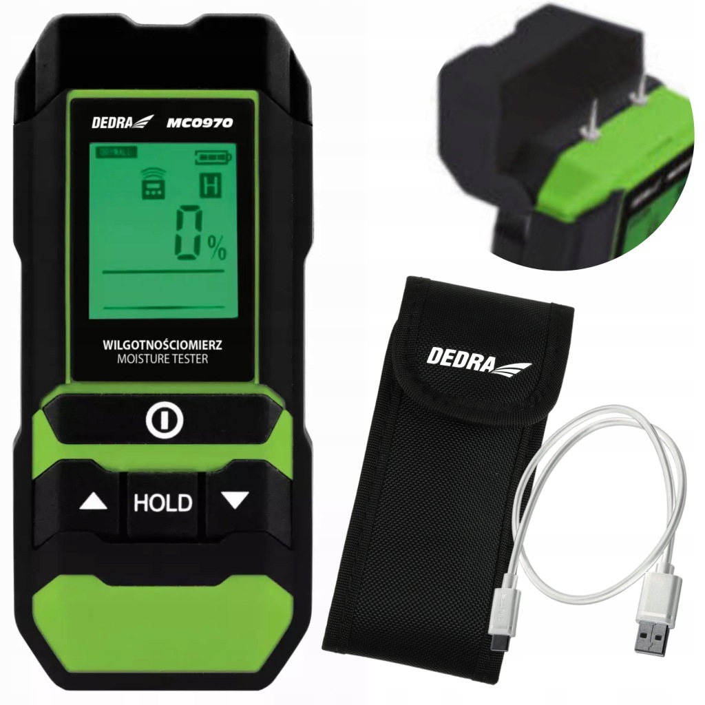 вимірювач вологості деревини і будівельних матеріалів MC0970-це корисний пристрій, що використовується для визначення вологості в даному матеріалі, що важливо перед його подальшою обробкою, особливо під час будівельних робіт. Крім того, він буде добре працювати при виявленні, наприклад, витоків в стіні і, отже, пошкоджень конструкції, повʼязаних з надмірним накопиченням вологи. Він також використовується підрядниками для вимірювання вологості стяжок перед укладанням підлоги або контролю вологості деревини перед її фарбуванням і фарбуванням.