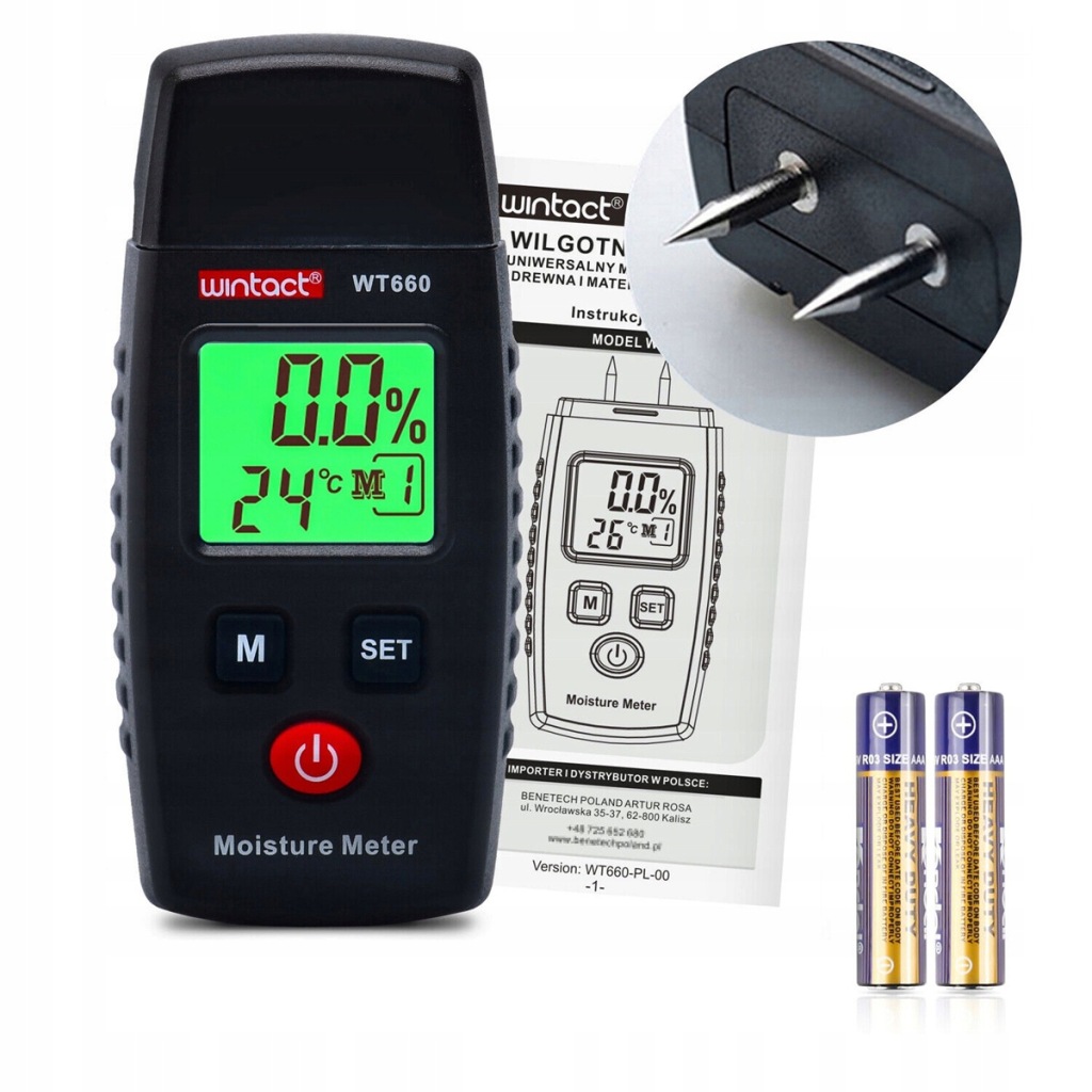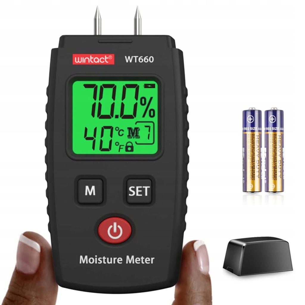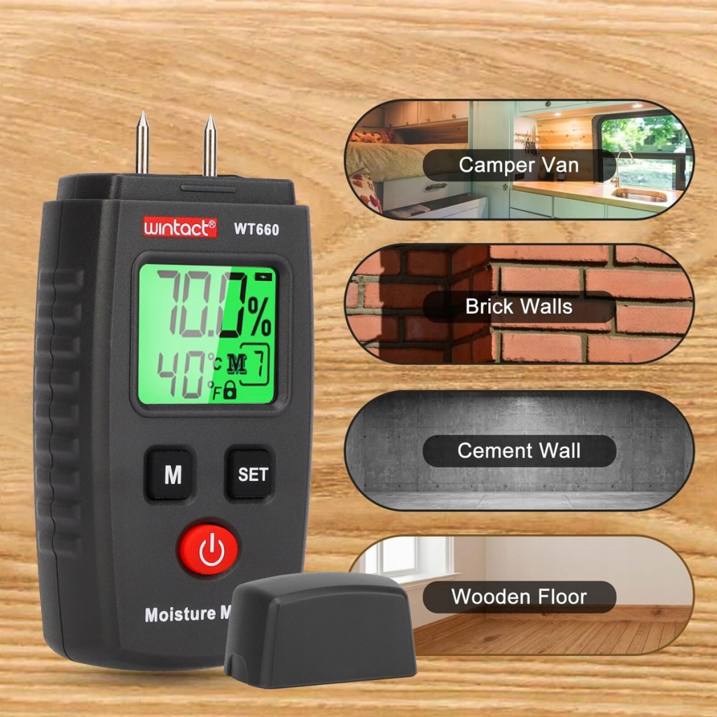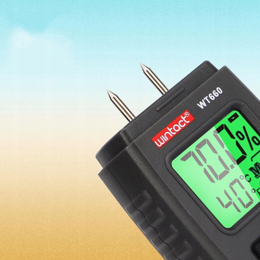 ✔️ вимірювач вологості для вимірювання вмісту вологи в деревині і деревних матеріалах і будівельних матеріалах. Залежно від типу дерева або матеріалу доступно в цілому 7 режимів вимірювання.
