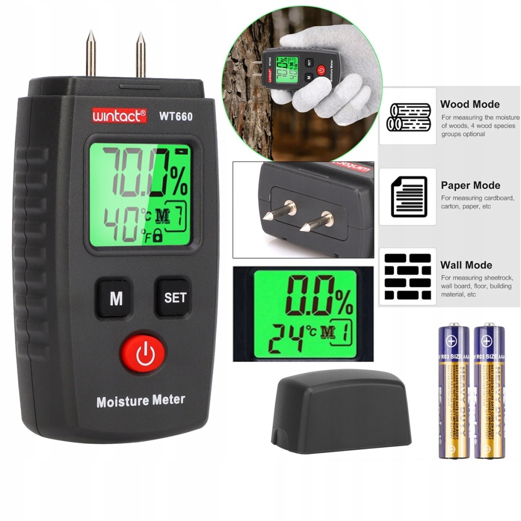 ✔️цей гігрометр широко використовується для вимірювання вологості будь-яких деревʼяних елементів, паперових виробів, трав і будівельних матеріалів.