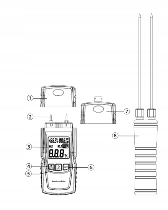 ✔️ широкий діапазон вимірювання 20 ~ 95%, підходить для 4 груп деревини