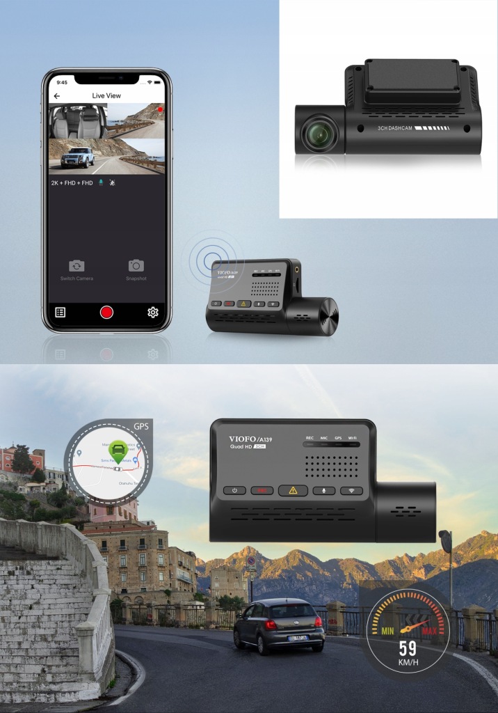 у камеру a139 3CH вбудований потужний модуль WIFI, що працює в двох діапазонах: 2.4 Ghz і 5GHz. Завдяки цьому камерою можна керувати за допомогою спеціального додатка VIOFO, яке безкоштовно для Android і iOS.