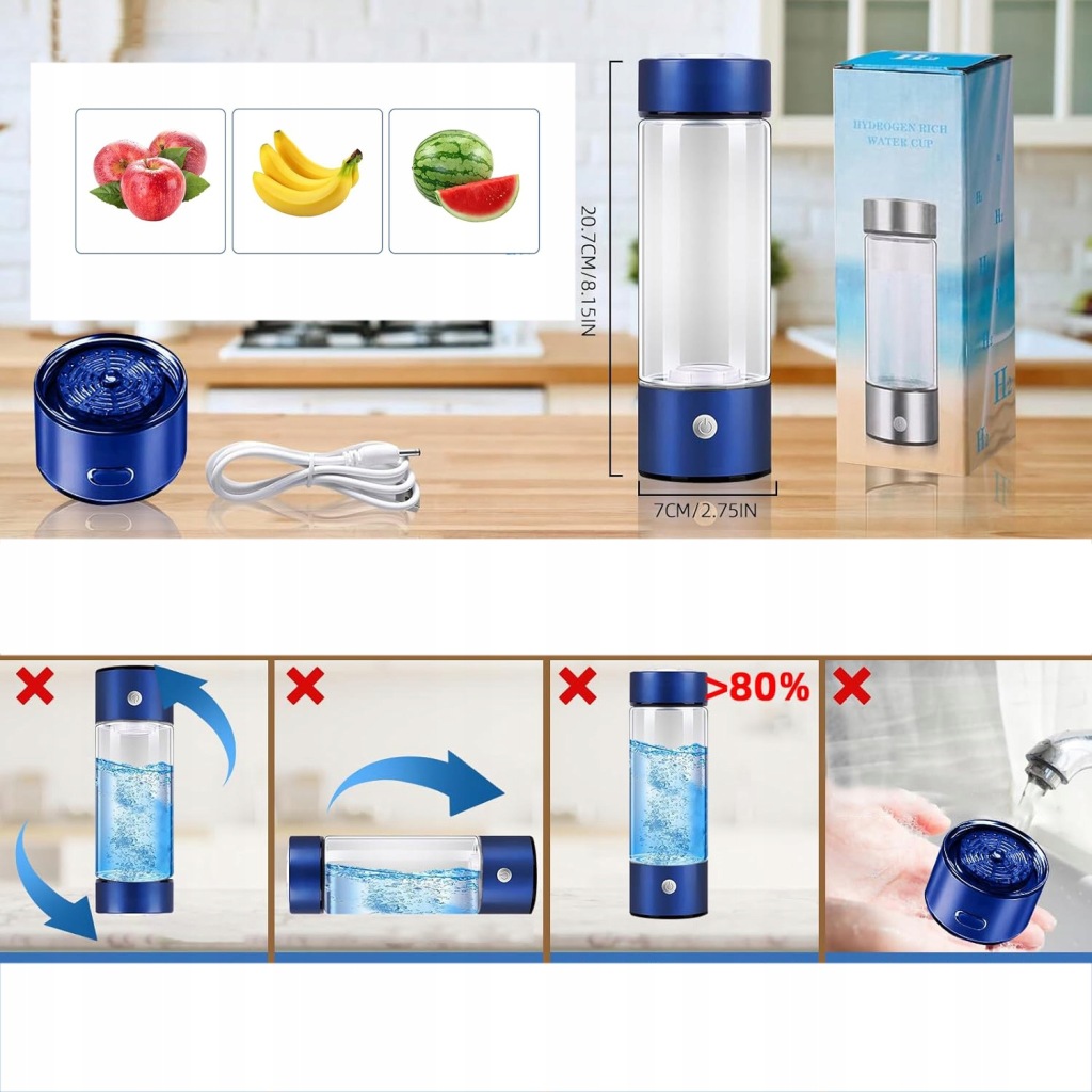 - швидка робота з однією кнопкою, перезаряджається USB і багаторазова, генератор водню більш економічний.