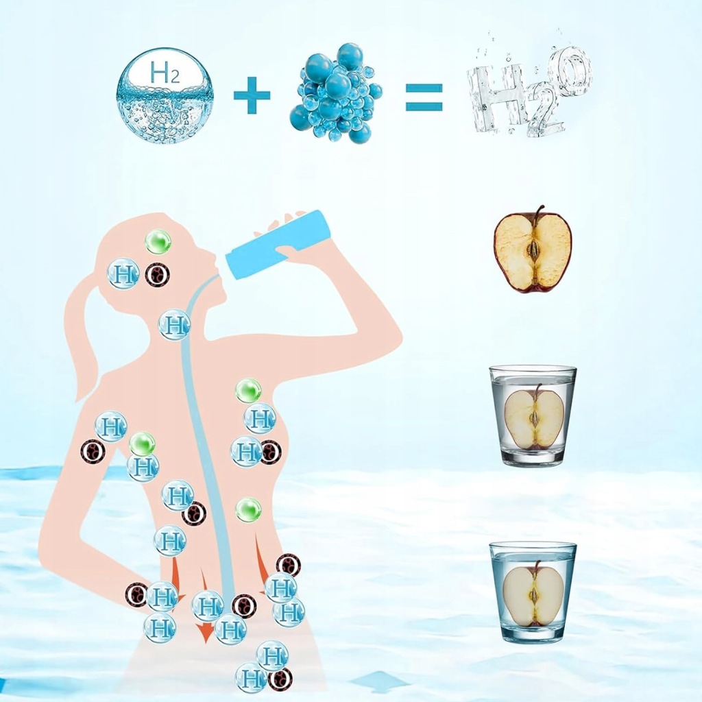 - пляшка водневої води використовує технологію SPE і PEM, яка може швидко генерувати до 900ppb іонів водню за один цикл, відокремлювати і виділяти H2 і O2.