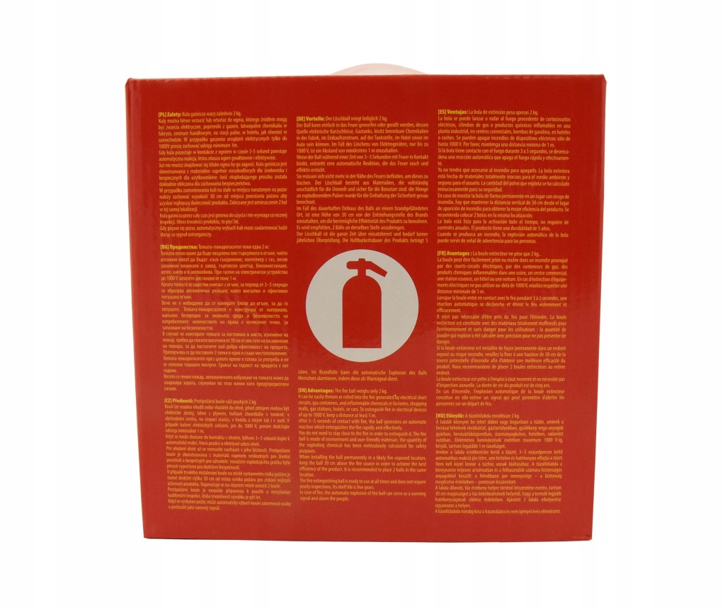 при установці кулі на місці, схильному до займання, необхідно підтримувати висоту 30 см від місця пожежі, щоб продукт. Рекомендується розмістити 2 кулі в одному місці. Вогнегасний куля завжди готовий до використання і не вимагає щорічного огляду