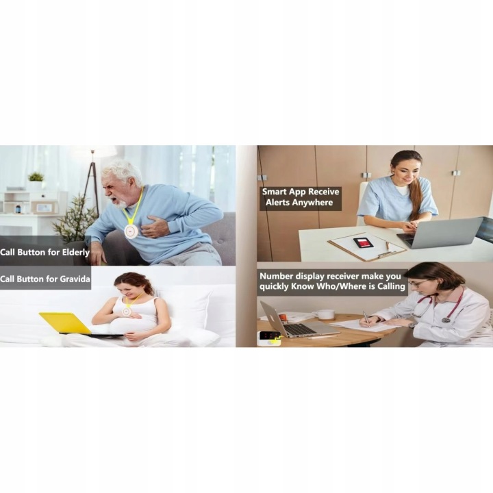 пейджер WiFi Caregiver пейджер для для літніх людей і забезпечує надійне рішення для надзвичайних ситуацій. Він має один приймач і шість кнопок виклику, що дозволяє миттєво допомагати по дому.
