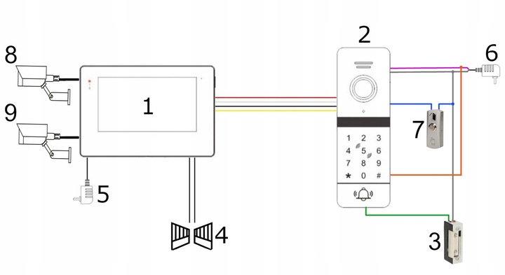 Примітка: комплект може бути розширений додатковими 5 моніторами + 1 додаткова зовнішня панель + 2 камери відеоспостереження.