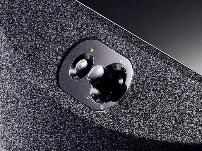 вимикач живлення і регулятор гучності, найбільш часто використовувані елементи управління, були переміщені на передню панель пристрою, що полегшує доступ до них. Нахилені під кутом 45 градусів, вони прості у використанні, навіть якщо динамік знаходиться на підлозі. Світлодіодний індикатор розташований над вимикачем живлення, так що навіть в затемненій кімнаті ви можете легко побачити, чи включено пристрій