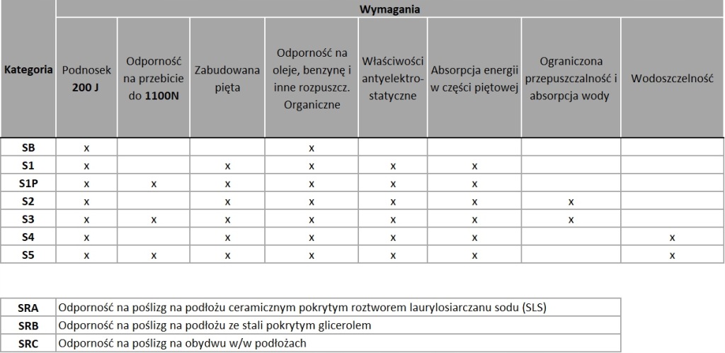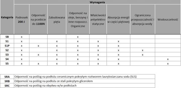 категорії безпечного взуття за стандартом PN-EN ISO 20345: