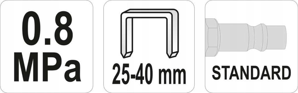 професійний пневматичний степлер для монтажних та оздоблювальних робіт. Забиває Скоби з кроком 5,7 мм і довжиною від 25-40 мм.він має обертову насадку для виходу повітря, зʼєднання 1/4bsp, носик, оснащений запобіжником для захисту від випадкового застосування скоби. Корпус виготовлений з литого під тиском алюмінію .