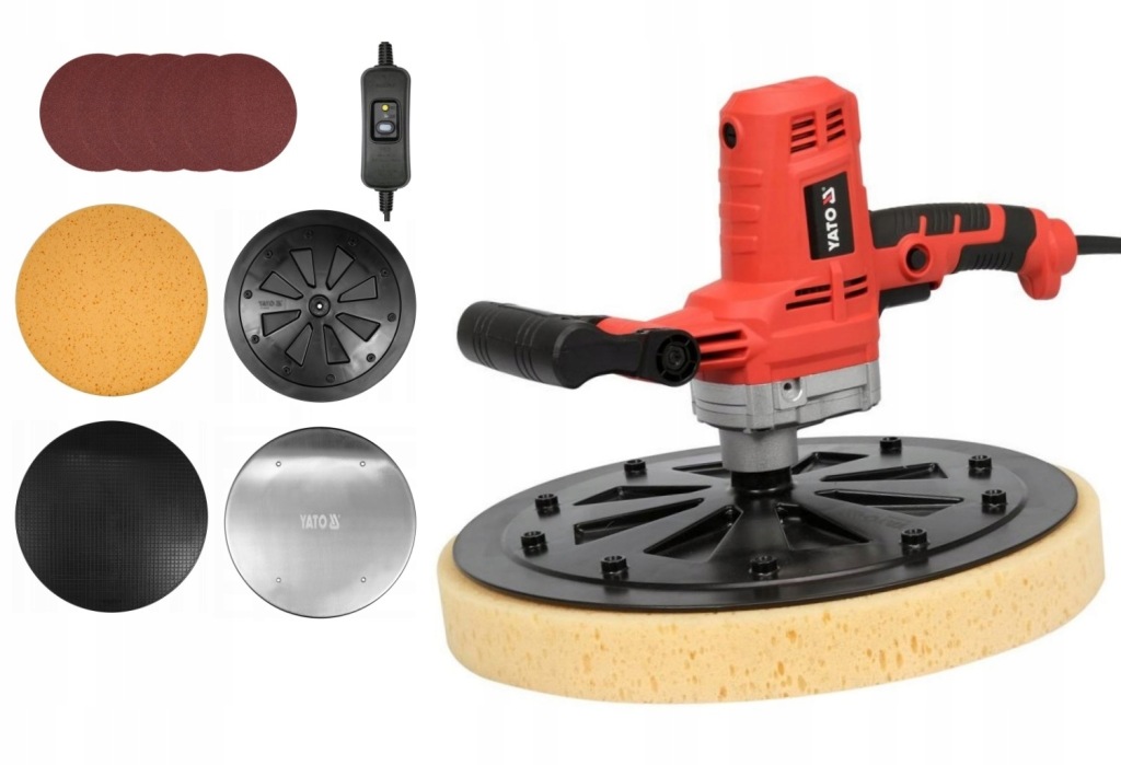 - комплектація: затирочна машина|губчастий диск|пластиковий диск|липучка для губки і наждачного паперу|диск наждачного паперу P24 x6 / металевий диск