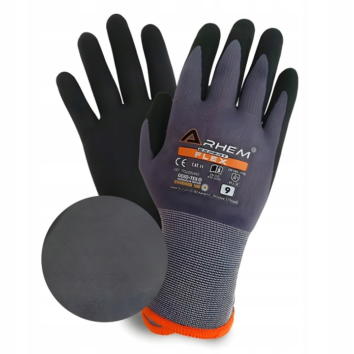 захисні рукавички з поліестеру сірого кольору, покриті чорним латексом з пінопластовою структурою ARHEM FLEX➖➖➖➖➖➖➖➖➖➖➖➖➖➖➖➖➖