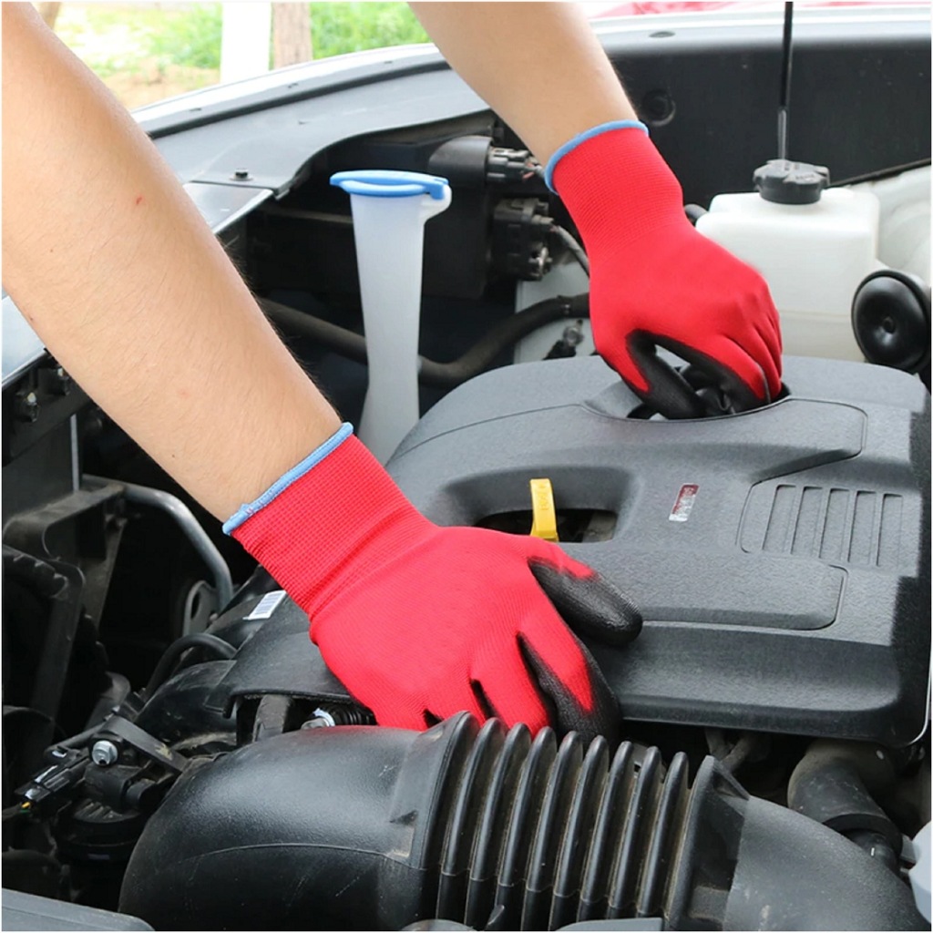► захисні рукавички з безшовного червоного поліефірного трикотажу (стібок 13).
