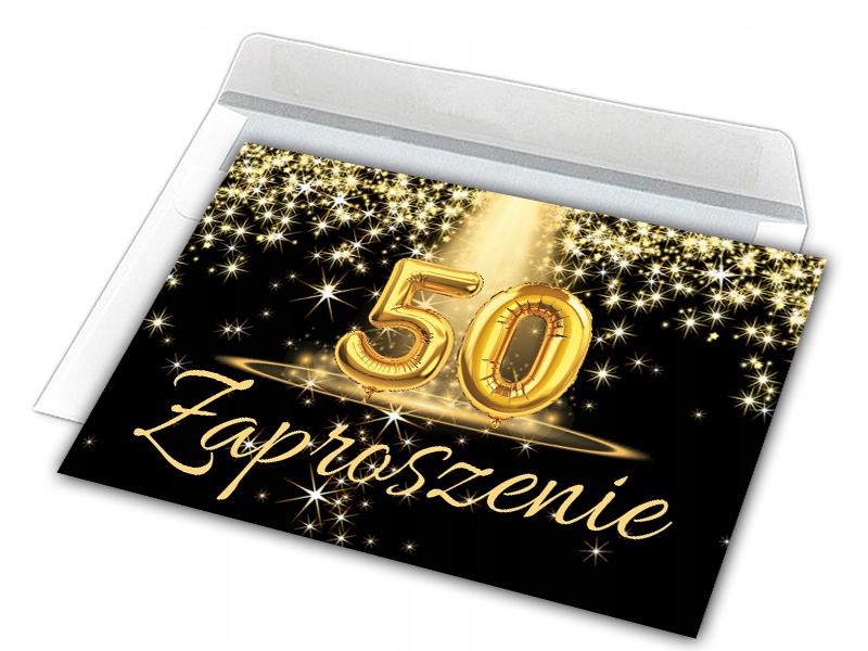 на лицьовій стороні в центрі цифра 50, утворена повітряними кулями, зверху падаючі зірочки, внизу напис"запрошення".