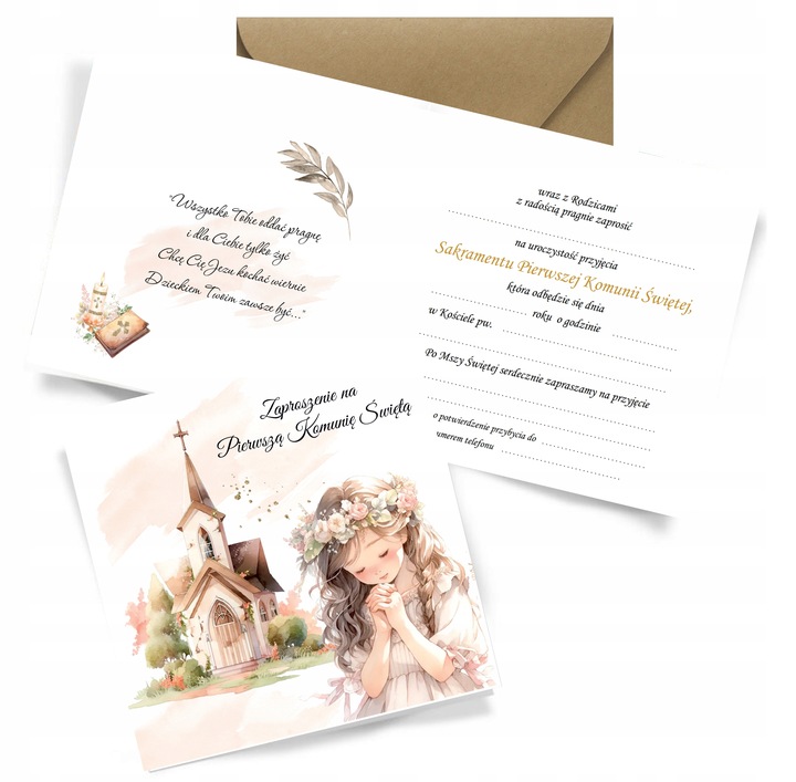 - обкладинка виготовлена з екологічно чистого жорсткого крафт-паперу коричневого кольору вагою 350 г.вирізана лазером з релігійним мотивом і написом "перше Святе Причастя".