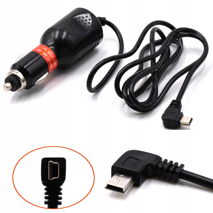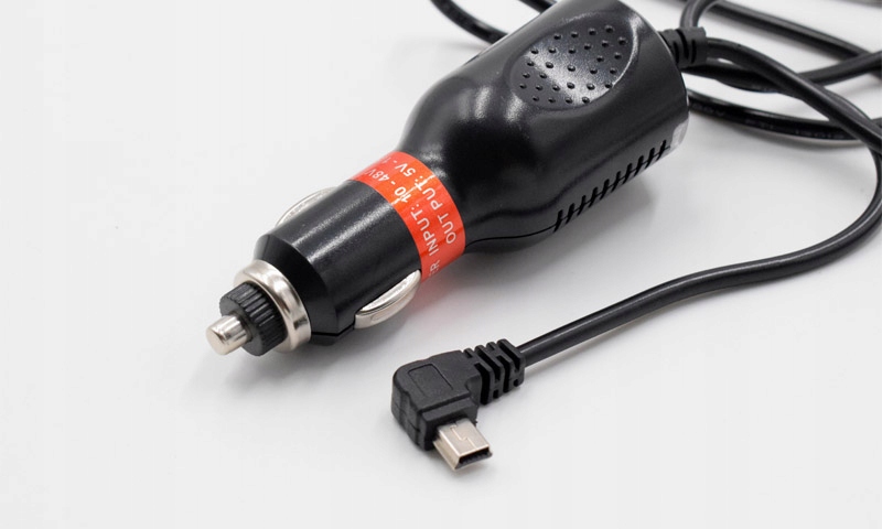універсальний автомобільний зарядний пристрій для камер / відеореєстраторів і GPS-навігації, оснащений міні-USB-розʼємом.