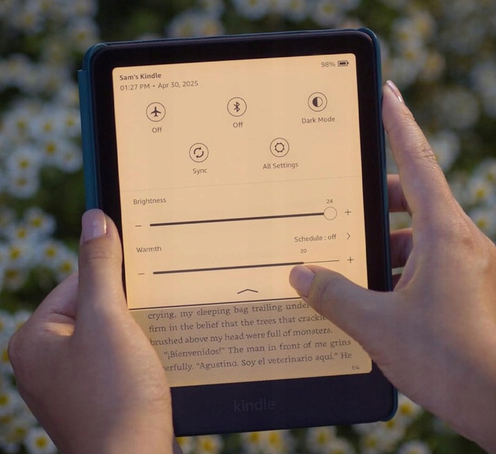 тепер ви можете налаштувати відтінок дисплея Kindle Paperwhite від білого світла до теплого бурштину або запланувати його зміну, щоб персоналізувати спосіб читання. Ви також можете налаштувати розмір і жирний текст, щоб отримати те, що вам найбільше підходить.