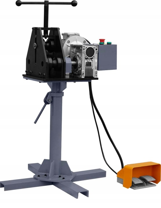 Трехвалковий згинальний верстат зі змінними роликами для згинання труб і профілів різних розмірів. Ідеальне рішення для слюсарних і ремісничих майстерень. Корпус згинального верстата виготовлений з пластин із загартованої сталі. Основа була розширена для більш стабільної збірки. Згинальний верстат оснащений електродвигуном, що підвищує ефективність і зручність роботи.