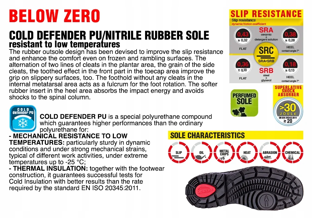 підошва: COLD DEFENDER PU/нітриловий Каучук до +300°c (1 хвилина) і низькі температури до -25°