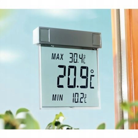 дійсно не легше дізнатися про погоду на вулиці. Якщо використовується "VISION" від TFA, температура зовнішнього повітря відображається у вигляді великих цифр практично прямо на склі вікна. Термометр висить рівно, легкий і елегантний на зовнішній стороні вікна, температуру можна легко прочитати зсередини. Враховуються максимальні і мінімальні значення дня, завжди актуальні завдяки щоденному автоматичного скидання. Погодостійкий термометр дуже простий в установці: приклейте тримач до зовнішньої сторони скла, повісьте пристрій, і все готово. Його можна легко зняти для очищення вікон або заміни батарей.