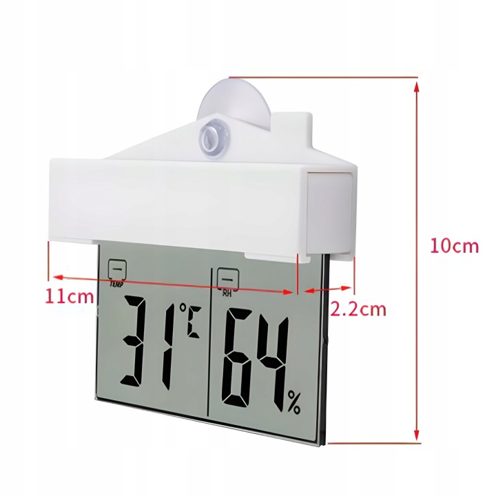 ⭐зовнішні термометри, призначені для установки безпосередньо на скло. термометрмає досить великий розмір цифровий дисплей, який дуже читається . Показує температуру в °C/°F і вологість повітря.