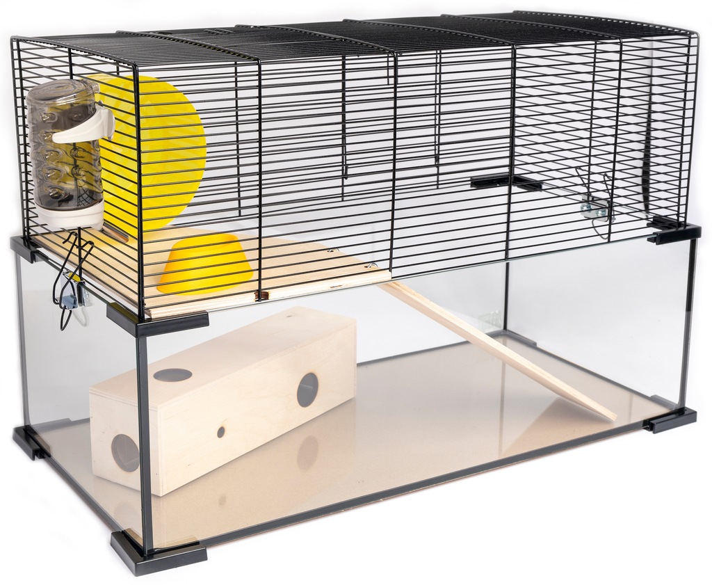 потрібна клітка для гризунів, яка поєднує в собі переваги традиційних конструкцій з сучасністю? клітка Vetro Plus Nature розміром 60x30x39 см - дуже цікавий продукт від відомого виробника-компанії Comfy. Тут була побудована дворівнева конструкція досить великих розмірів. Гора утворює традиційний елемент осілої клітини . саме вона дасть гризунам відчуття свободи і хорошої циркуляції повітря. Миші або хомʼяки зможуть лазити тут за своїм бажанням. Крім того, це місце буде служити їм для розваги та харчування.