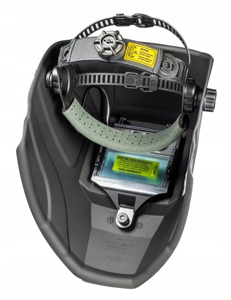 у місці контакту чола з головним болем ми використовували мʼяку прокладку, яка зменшує тиск на лоб і потовиділення. Таке рішення зводить до мінімуму відчуття дискомфорту і втоми при тривалому використанні маски. Повʼязка на голову також дуже легка, а матеріали, що використовуються для виготовлення повʼязки на голову, стійкі до високих температур, що надзвичайно важливо при зварюванні.