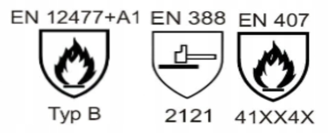 ✔️ EN 407: 2004 (3.1.2.X. 3.X.)