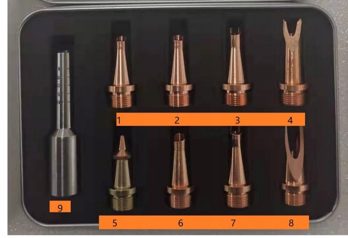 - зварювальний пістолет з регульованою фокусною відстанню і набором аксесуарів для точного зварювання.