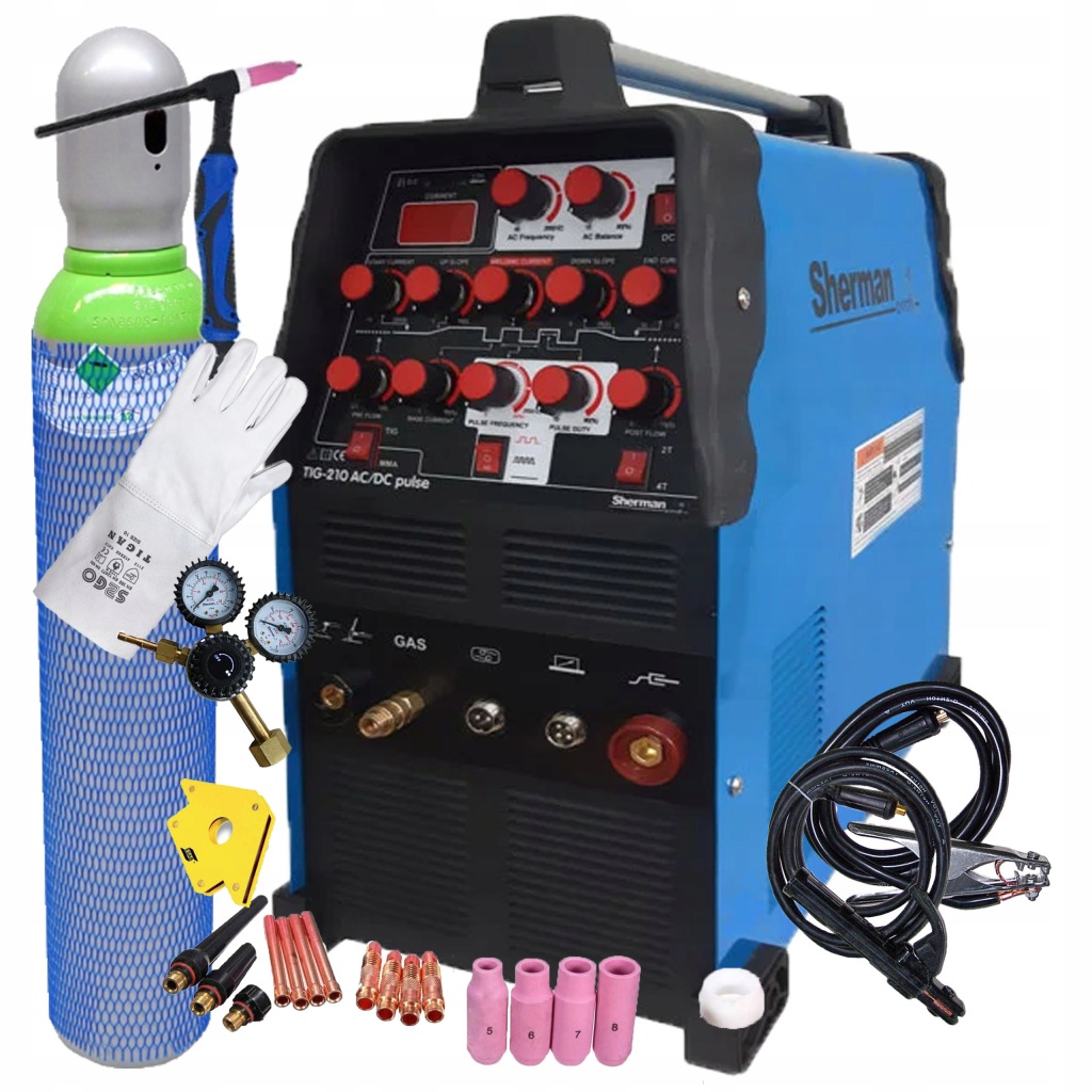 ЗВАРЮВАЛЬНИЙ АПАРАТ SHERMAN TIG 210 AC / DC PULS 200A MMA АЛЮМІНІЄВИЙ 2В1 КОМПЛЕКТ