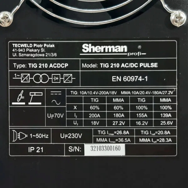 - зварювальний апарат Tig 210 Sherman AC/DC