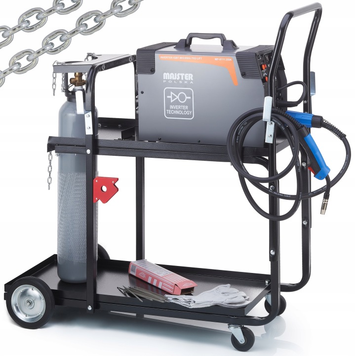 ⭐ може використовуватися з усіма зварювальними апаратами MMA, MIG, TIG. при зварюванні з балоном нам не потрібно переміщати його вручну. додаткові полиці вміщують необхідні під час роботи аксесуари, щоб вони завжди були під рукою.